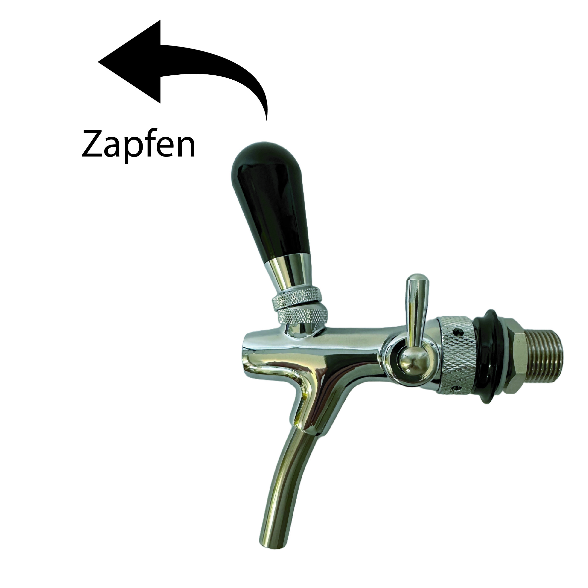 | Ausstattung: | 35 mm Gewindelänge, Edelstahl Kompensator, Edelstahl Schaumtaste, Kunststoff Bierauslauf, Stutzen 5/8 Zoll, selbst schließend |