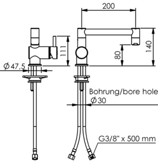 - Snelbevestiging en 2 x 3/8" flexibele slangen (460 mm),