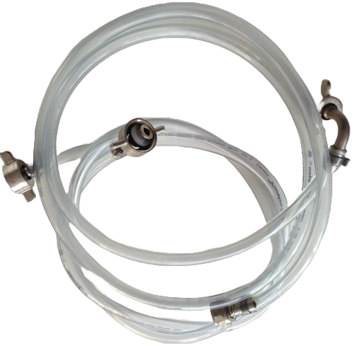 - 1 stuk Co2 slang 4 mm 1,7 m lang met twee rechte sproeiers en 3/4" vleugelmoeren